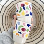 Kubek ceramiczny Merki x Ceramika Millena. W dekoracji kredką i złotem. Ze złotem, które nie lubi zmywarki, lepiej ręcznie. Wysokość 7 cm, pojemność 200 ml