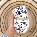 Okrągła podstawka na jajko, z rantem. W dekoracji kobaltowymi ciapkami. Można do zmywarki. Wykonane z masy ceramicznej wypalonej w 1240*. Średnica 10 cm, wysokość 3 cm.
