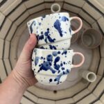 Kubek ceramiczny Merki x Ceramika Millena. W dekoracji kolorowymi szkliwami. pojemność ok. 220 ml – kapuczina sajz.